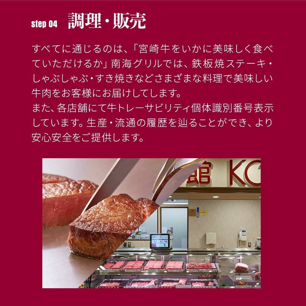 COMMITTED TO QUALITY1989年JAみやざき、(株)ミヤチクと業務提携し日本一の宮崎牛を“産地直送”という独自のルートを開拓、仕入れから販売まで一括、徹底管理をしております。