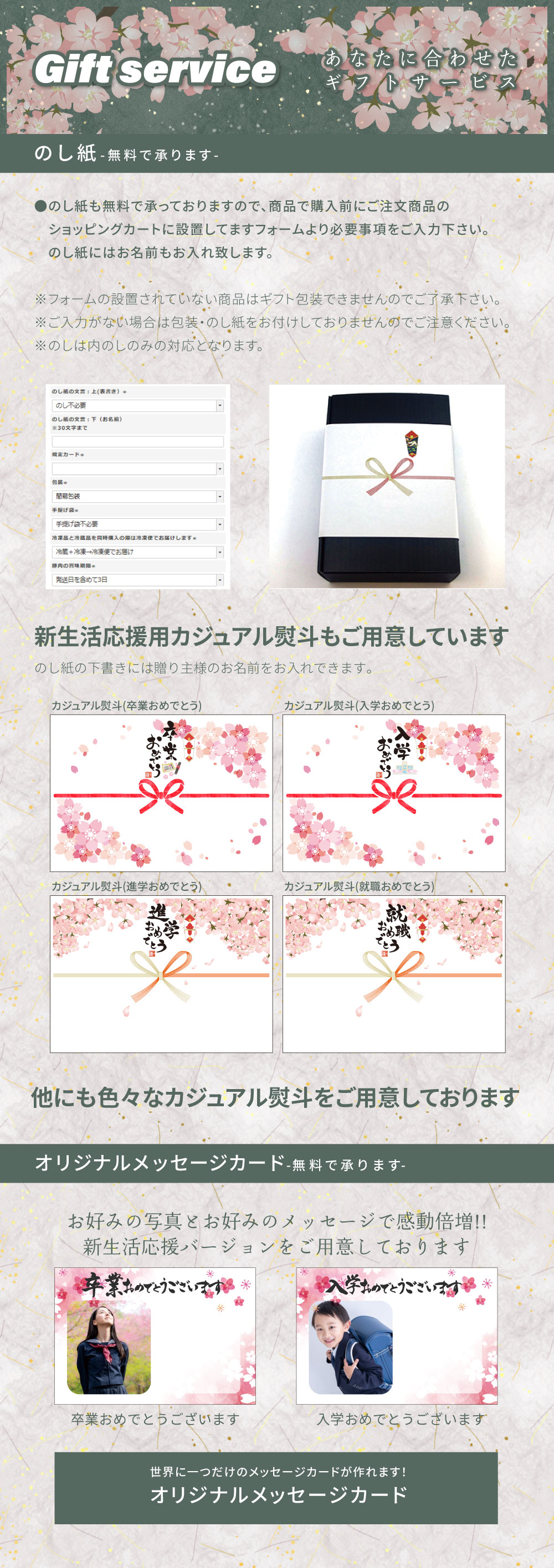 ギフト包装・のし紙- 無料で承ります -