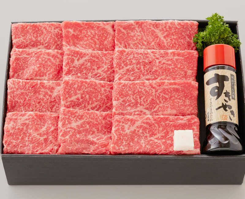 脂控えめの赤身部位で、やわらかく、老若男女問わずご好評を頂いております。 特製すき焼きのタレ付き。