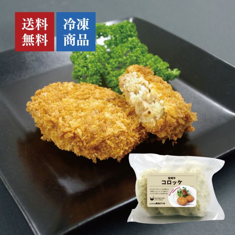 宮崎牛、国産黒毛和牛と北海道産の厳選したジャガイモを使用した甘くてほっくりのコロッケ。冷めても美味しいと評判の人気商品です。揚げ方リーフレットをお付けしています。
