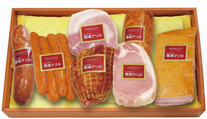 当店のハムを全て詰め合わせた、豪華な宝箱セット。 【703】南海グリル オリジナルハムギフト 7種