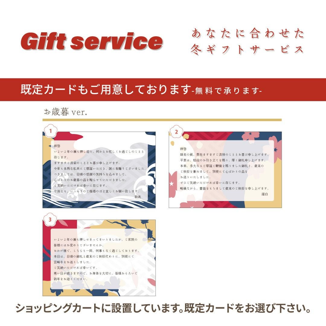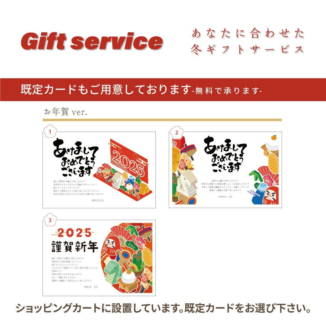 ● ギフト包装・のし紙も無料で承っておりますので、商品ご購入前にご注文商品のショッピングカートに設置してますフォームより必要事項をご入力下さい。