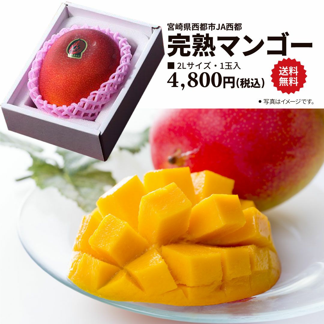 他の画像を見る 入荷次第の発送となります。 【期間・数量限定】宮崎県西都産 完熟マンゴー《2L 1玉》化粧箱入 のし対応◎ メッセージカード◎ ギフト◎ 各種決済対応◎ 送料無料!! 振込注文不可 クール便でお届け 当店特別価格 ¥ 4,800 税込 販売を終了しました。 詳細を見る お気に入りに登録する
