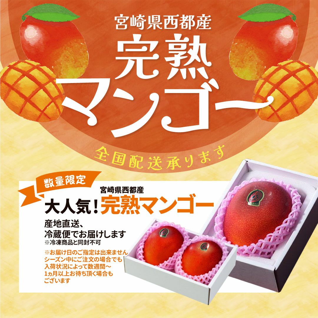 他の画像を見る 入荷次第の発送となります。 【期間・数量限定】宮崎県西都産 完熟マンゴー《2L 1玉》化粧箱入 のし対応◎ メッセージカード◎ ギフト◎ 各種決済対応◎ 送料無料!! 振込注文不可 クール便でお届け 当店特別価格 ¥ 4,800 税込 販売を終了しました。 詳細を見る お気に入りに登録する